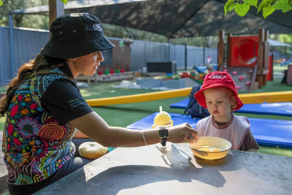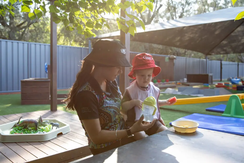 Pack a water bottle, hat and a change of clothes. We provide nappies, wipes, and sunscreen. Some centres also provide bedding.